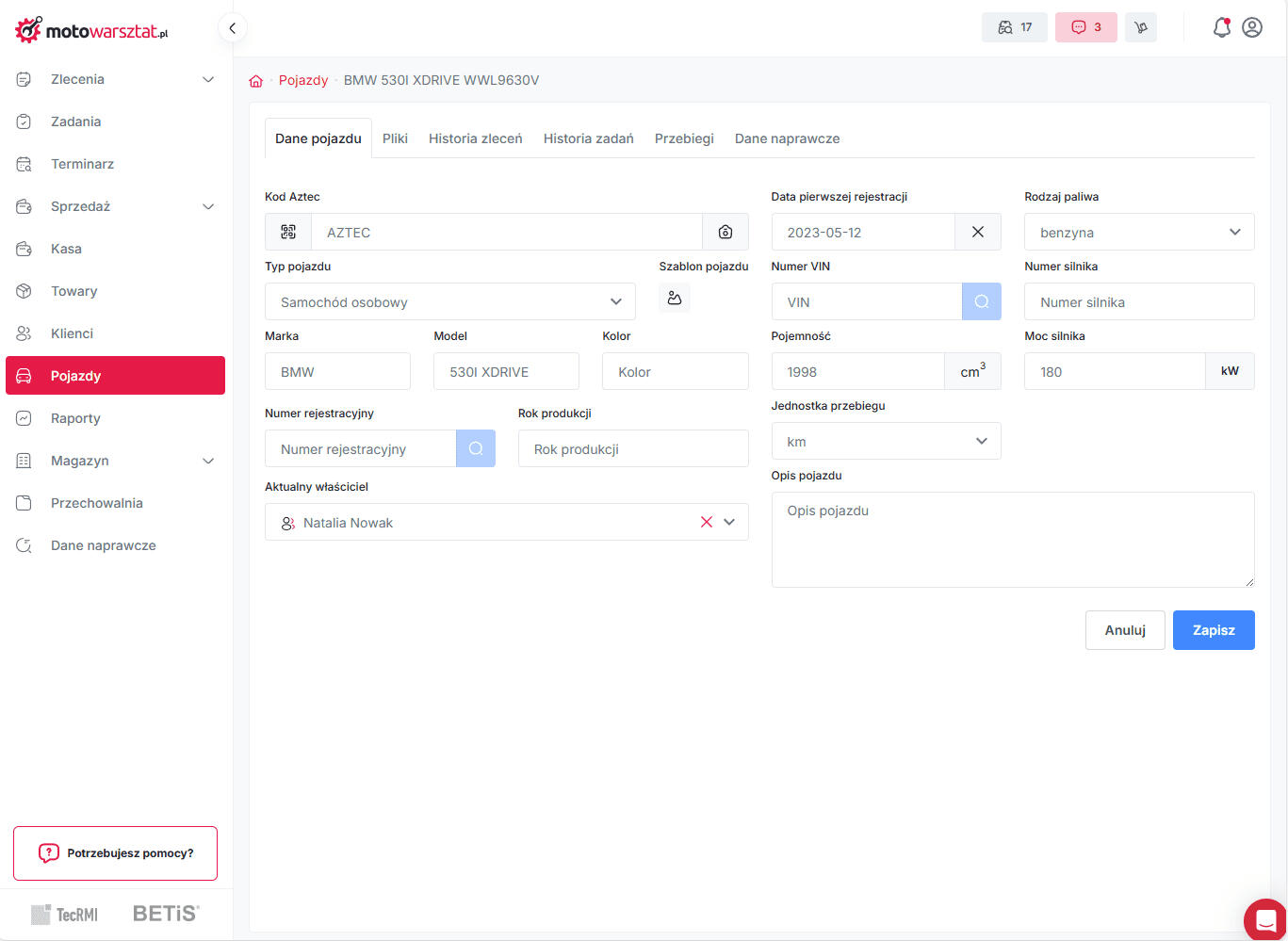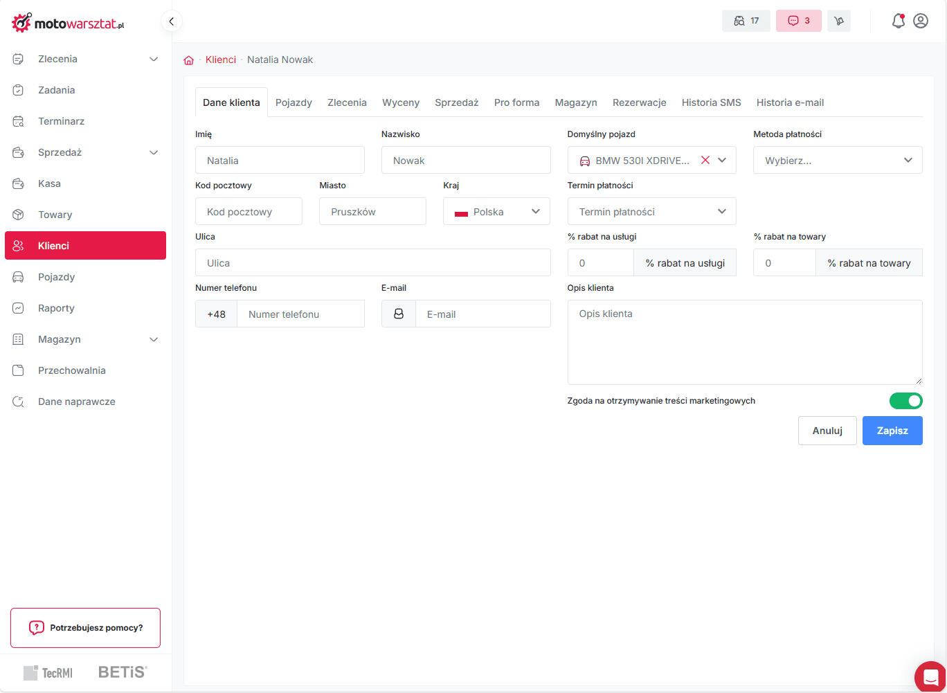 Automatyczne SMS-y lub e-maile do klientów – przypomnienia o odbiorze lub przeglądzie.